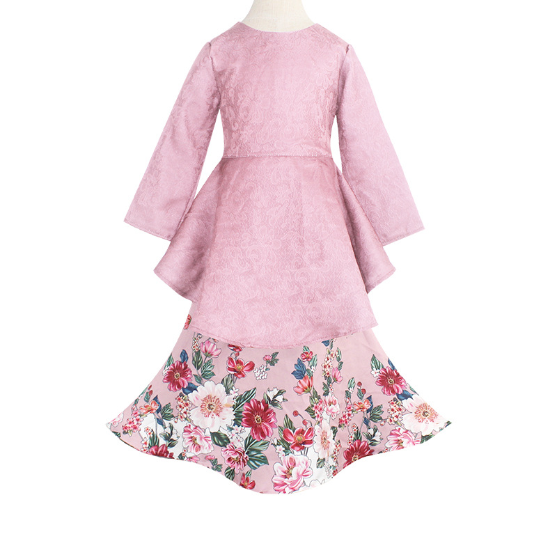 2022新款女童提花时尚简约设计感轻奢修身长袖套装裙子马来装新年