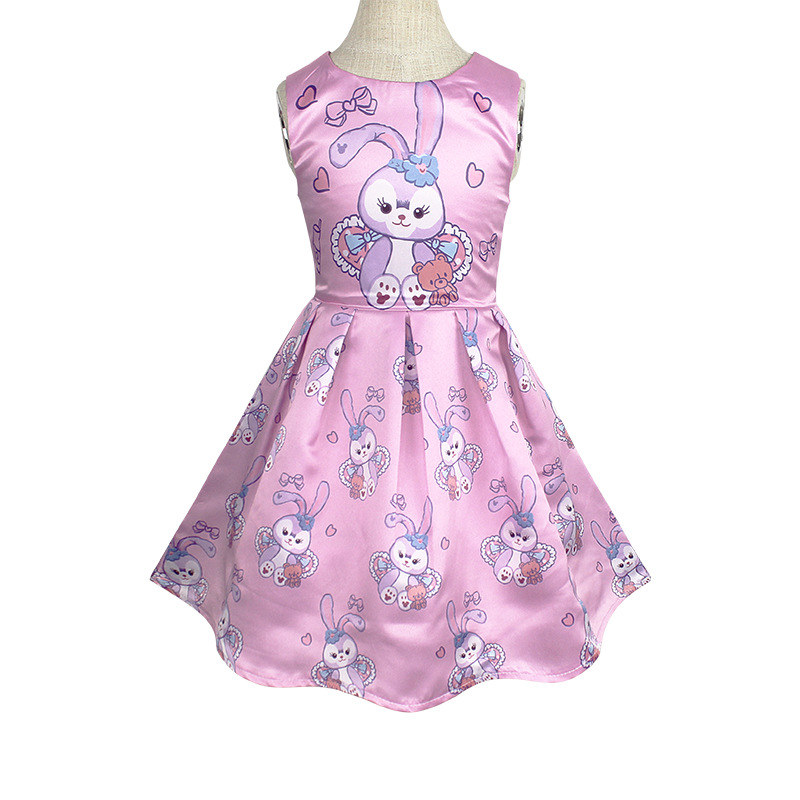 2022新款女童卡通连衣裙小兔子公主夏装短袖印花百褶裙