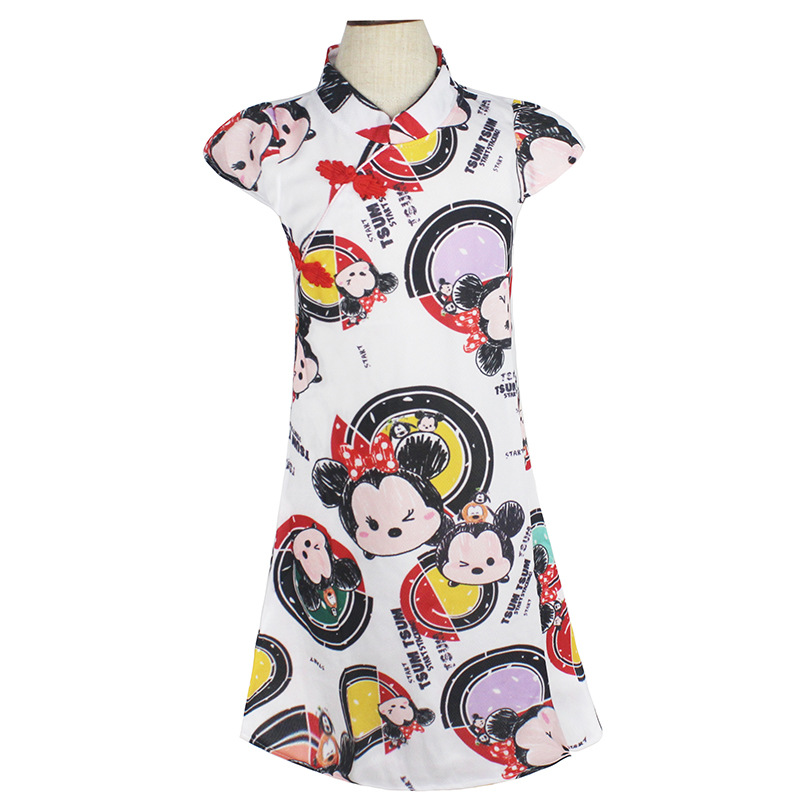 2022夏季新款女童米老鼠涂鸦可爱连衣裙短袖印花A字裙旗袍