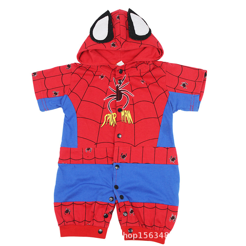 2023夏季新款儿童卡通蜘蛛侠短袖连体衣婴儿爬爬服男女宝宝哈衣
