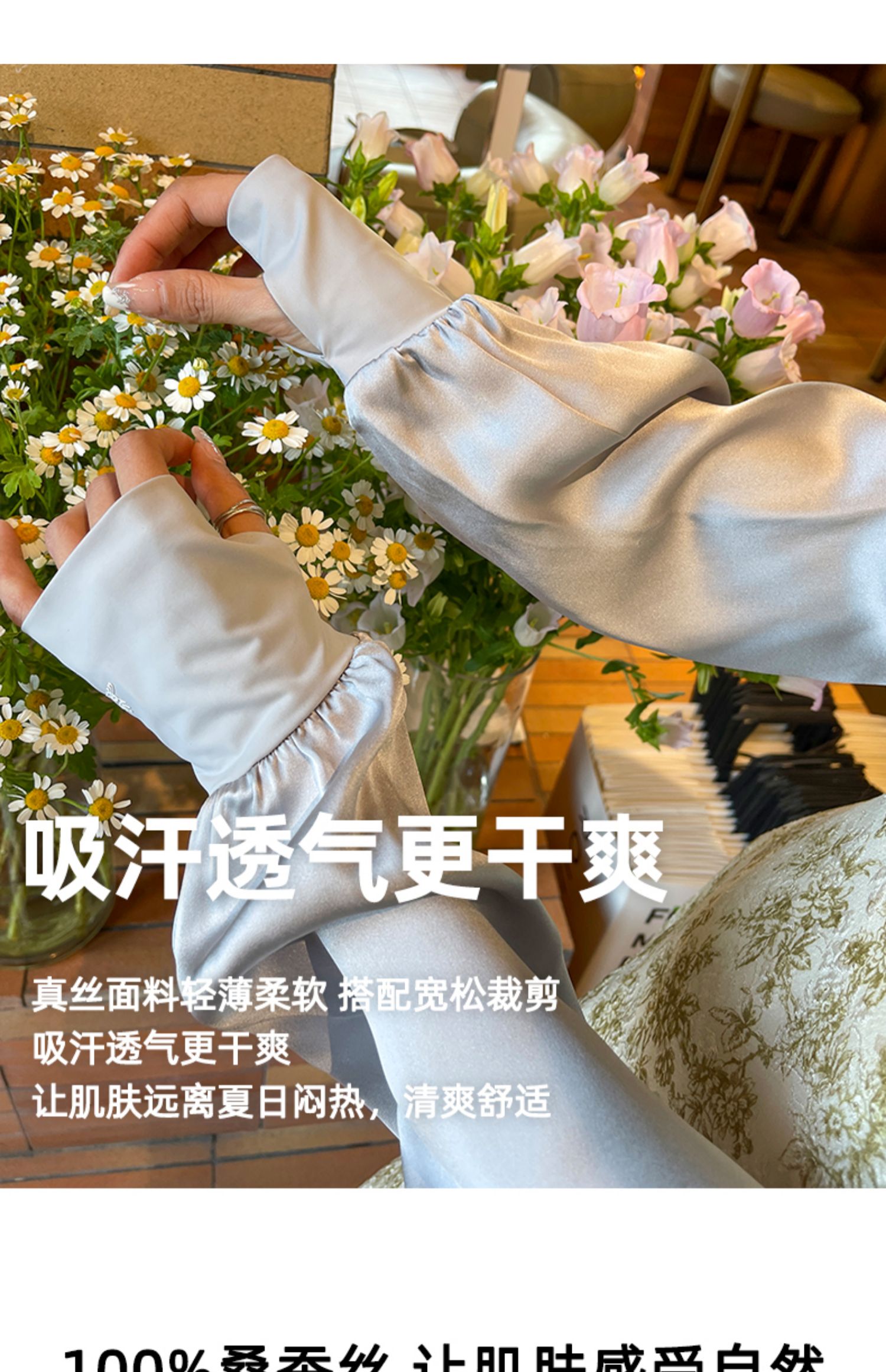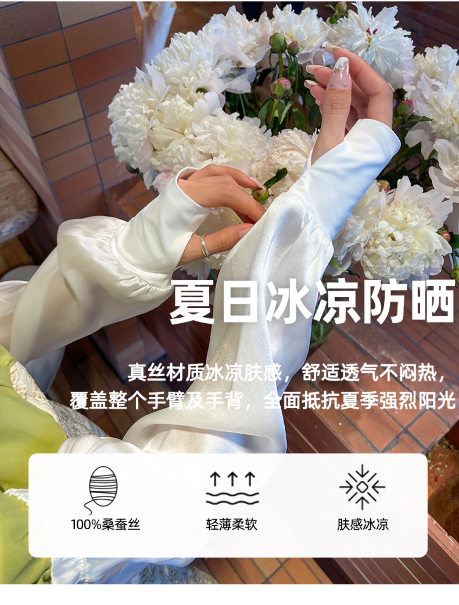 100 실크 태양 보호 소매 여성의 UV 보호 여름 승마 및 운전 얇은 느슨한 장갑 아이스 실크 손 소매 팔 프로텍터스토어 가기