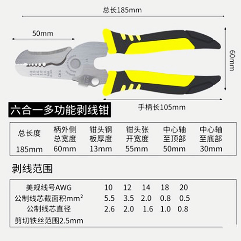 와이어 스트리핑 플라이어 다기능 6-in-one 볼트 플라이어 와이어 케이블 플라이어 주조 미끄럼 방지 전단 철판스토어 가기