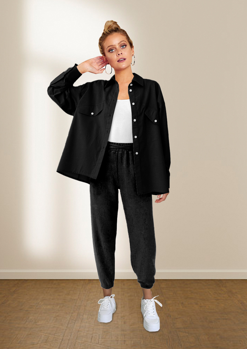 가을 2023 새로운 유럽과 미국 면 느슨한 패션 캐주얼 패션 통근 옷깃 긴 소매 여성을위한 인기있는 셔츠스토어 가기