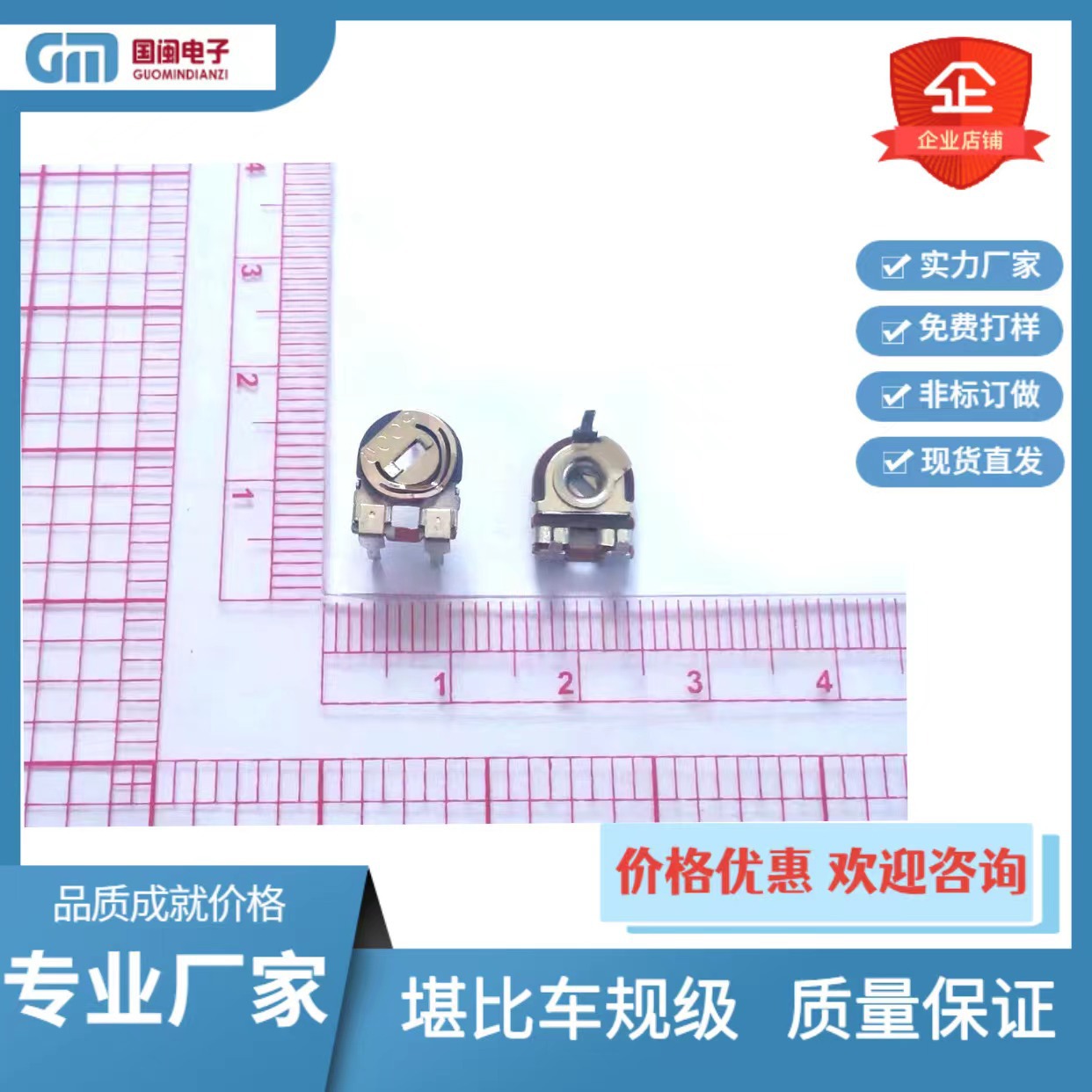 원래 조정 가능한 저항 SR085 B1K 10K 100K 500K 1 홀 철 3 다리 수평 전위차계스토어 가기