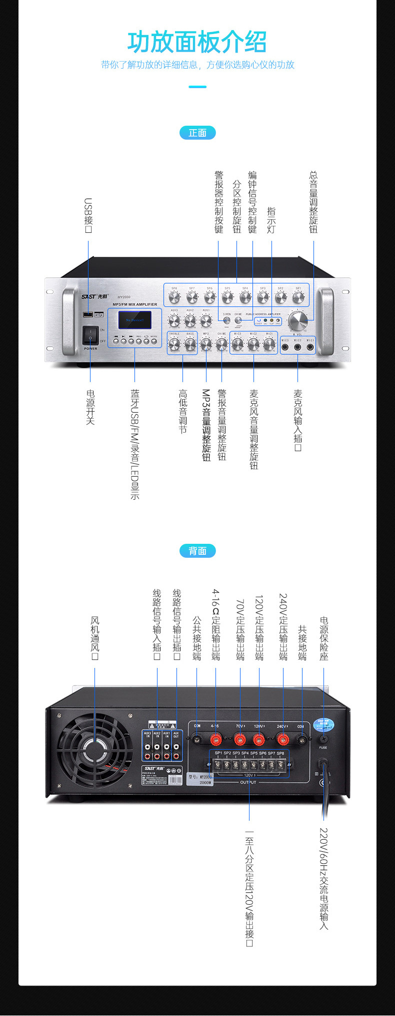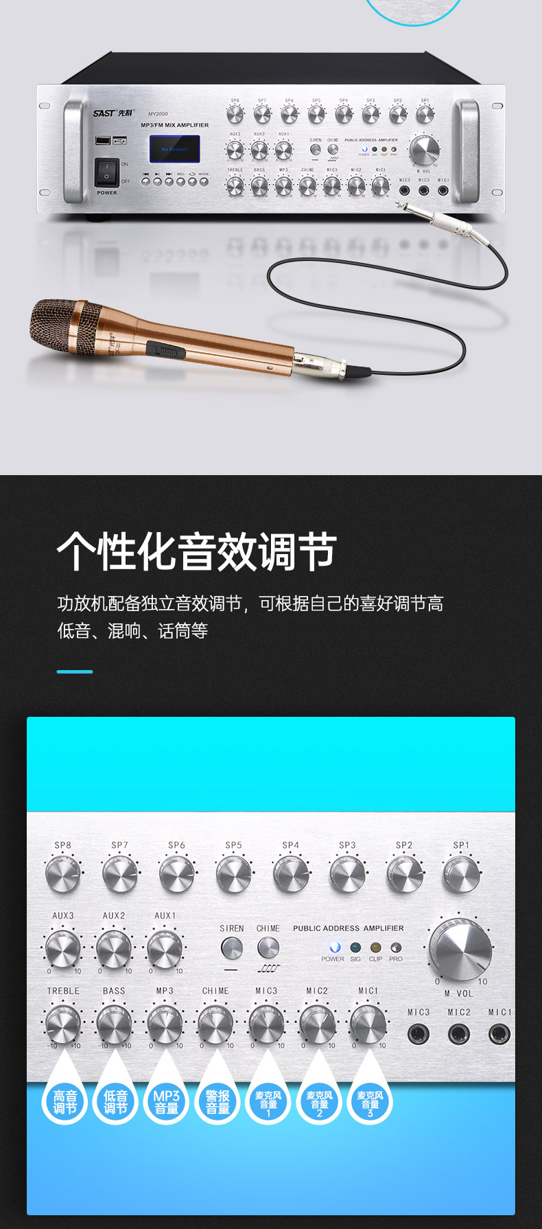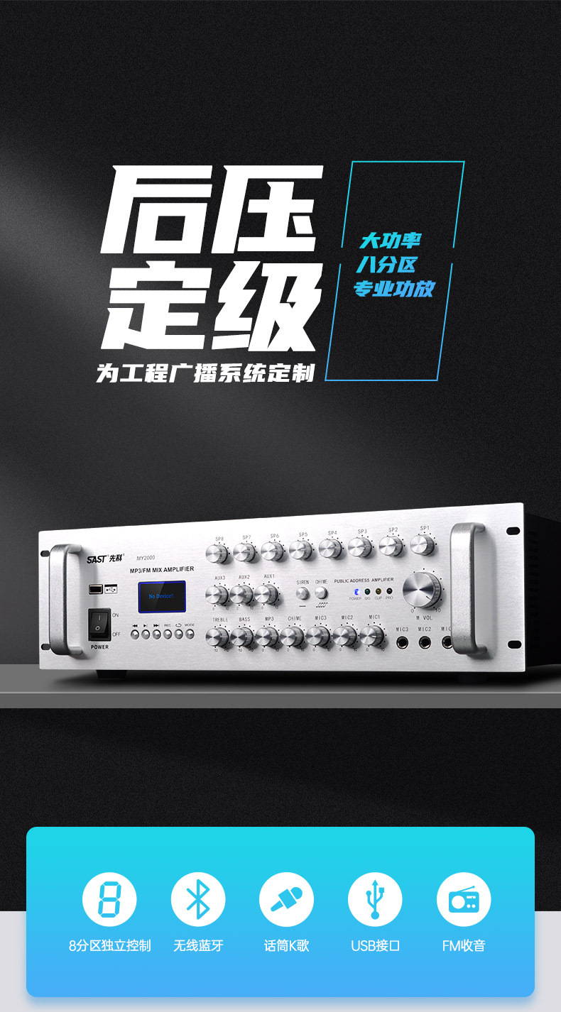 Xianke 고정 압력 8 존 후방 스테이지 파워 앰프 고출력 캠퍼스 공영 방송 고음조 상단 흡수 혼 사운드 칼럼