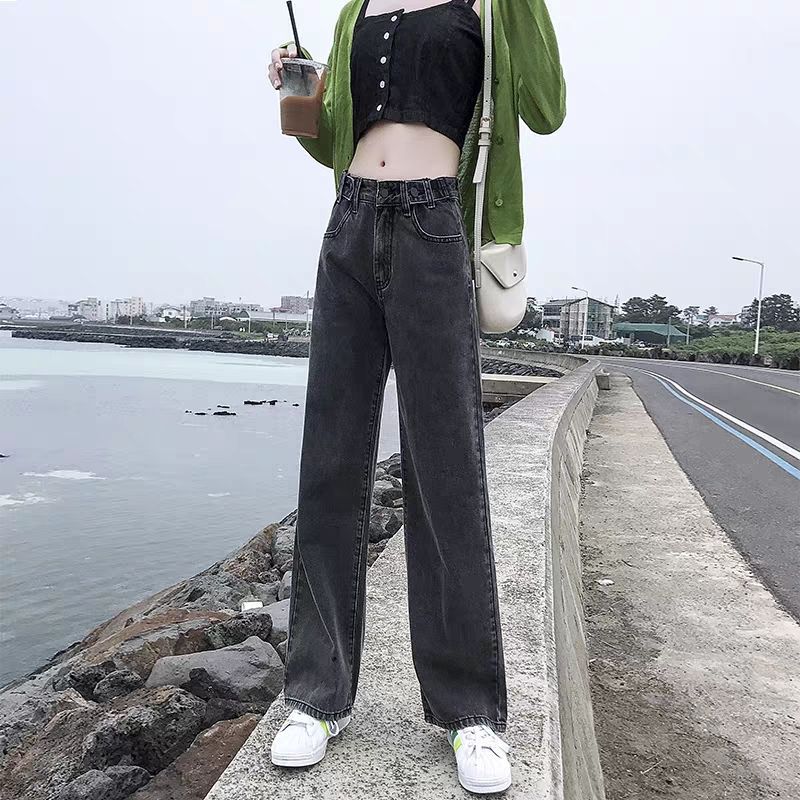 2024 여름 높은 허리 청바지 여성 느슨한 한국식 학생 스트레이트 와이드 레그 팬츠 Ins 올매치 슬림 팬츠스토어 가기