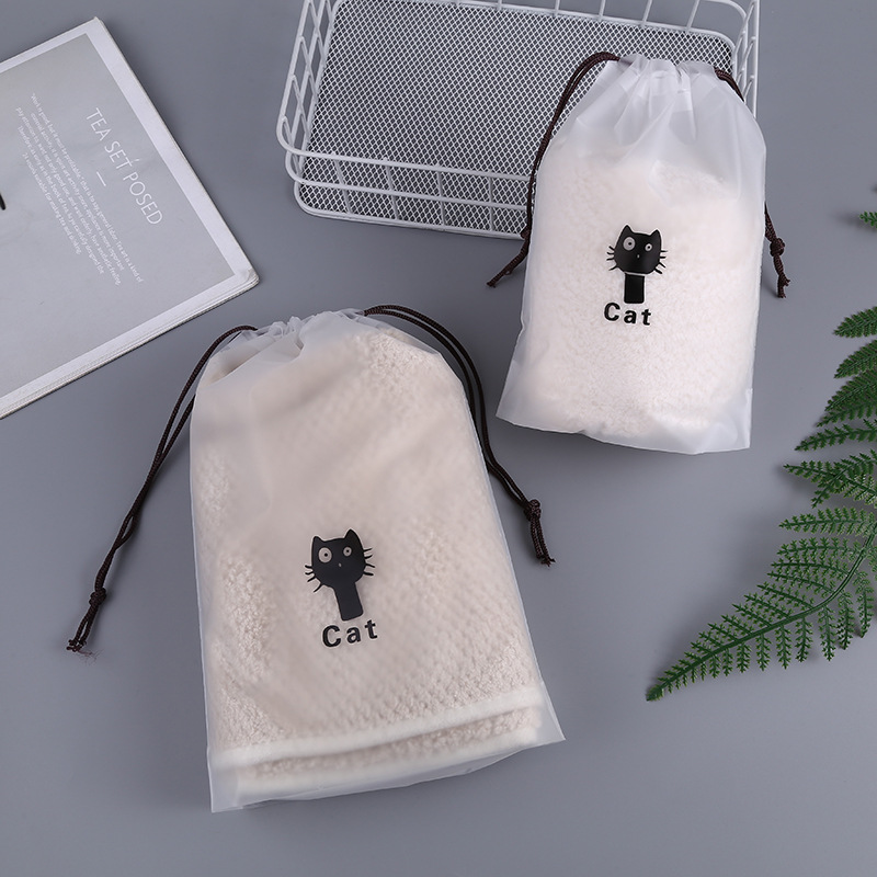 Spot PE 곰 모양 조임끈 주머니, 심플한 투명 반투명 수납 가방, 만화 새끼 고양이 조임끈 여행용 수납 가방 도매