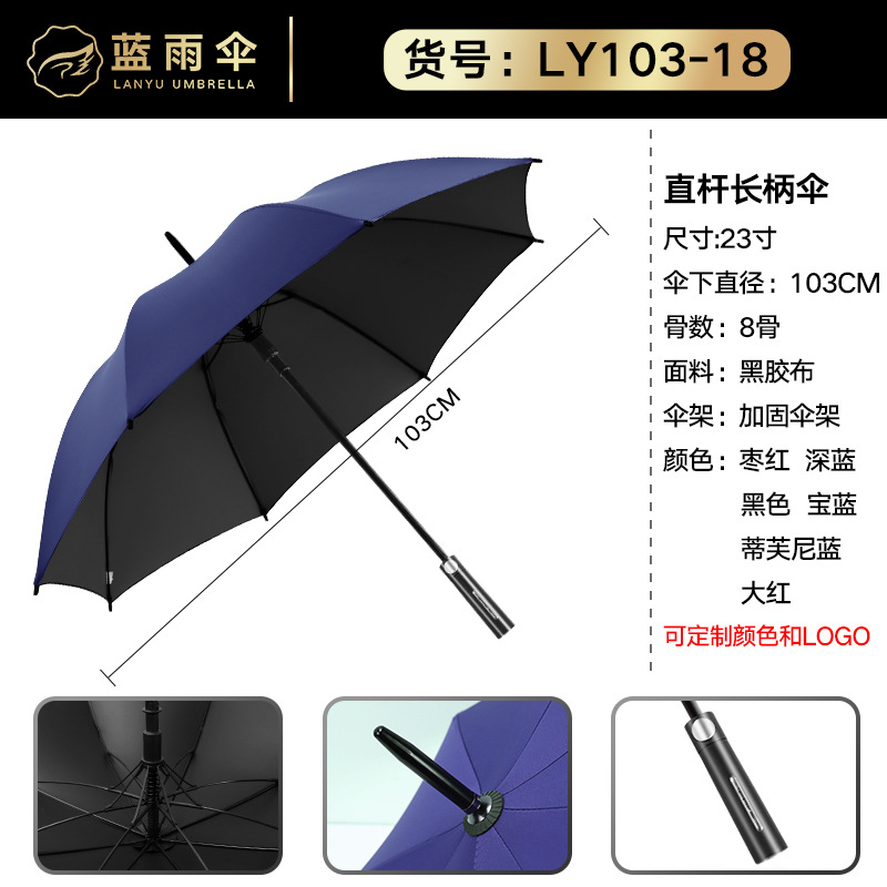 • 스트레이트 막대 우산: 8 개의 뼈가 강화 된 긴 우산에 닿습니다.
