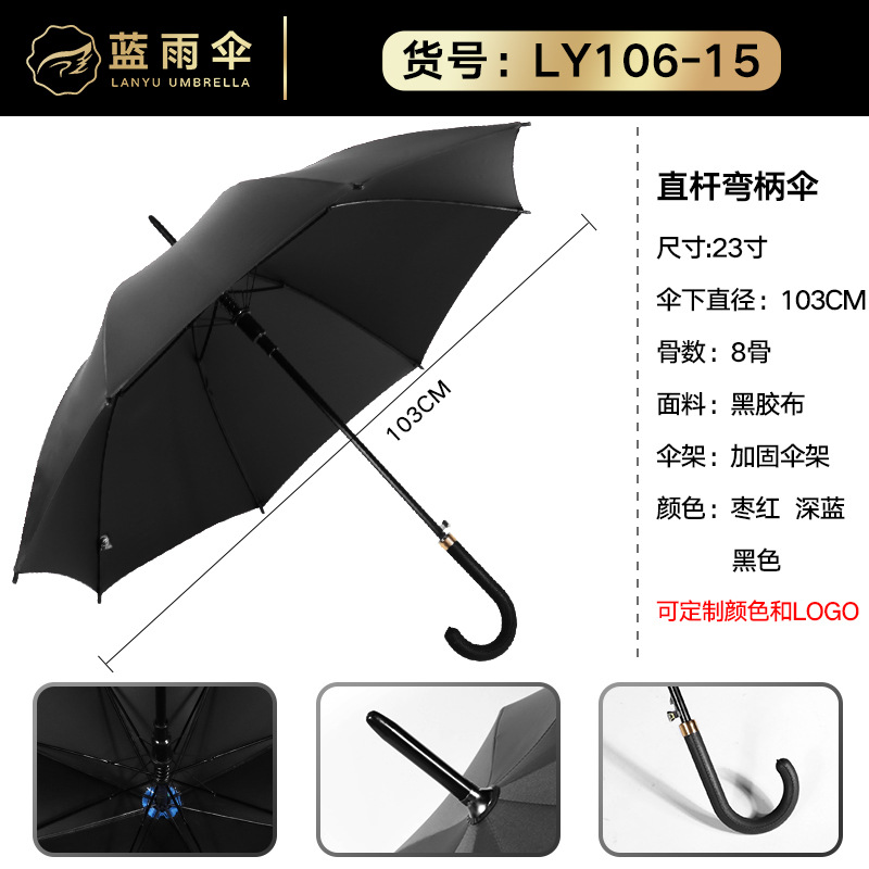 • 스트레이트 로드 우산: 8 본 블랙 고무 강화 긴 우산