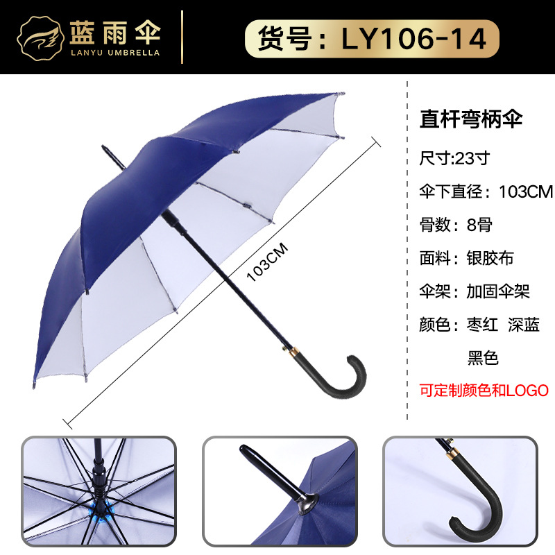 • 스트레이트 막대 우산: 8 뼈 실버 접착제 곡선 손잡이 긴 우산