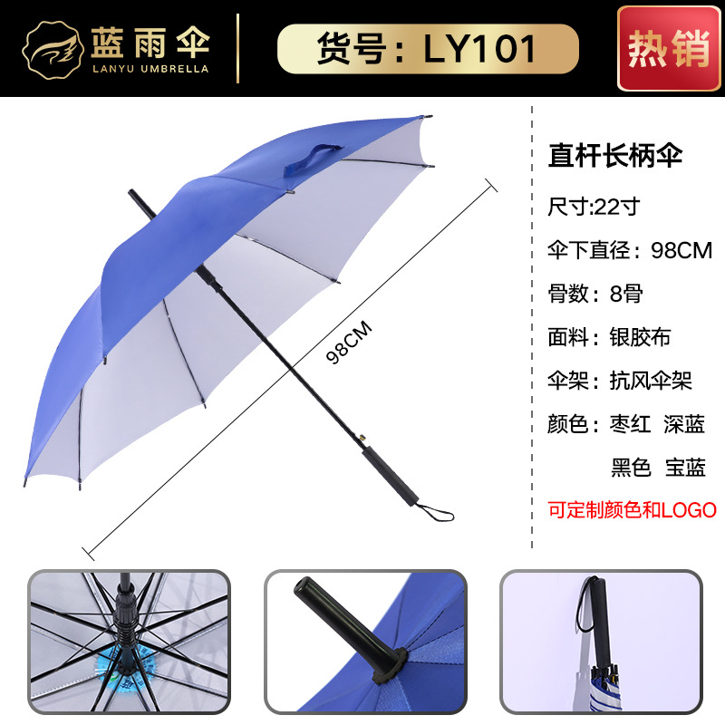 • 스트레이트 막대 우산: 8 뼈 실버 접착제 긴 우산