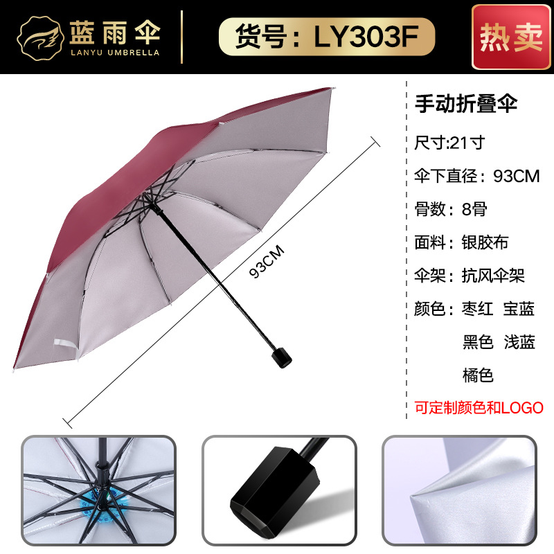 • 접는 우산: 8 뼈 실버 접착제 손 오픈 접이식 우산