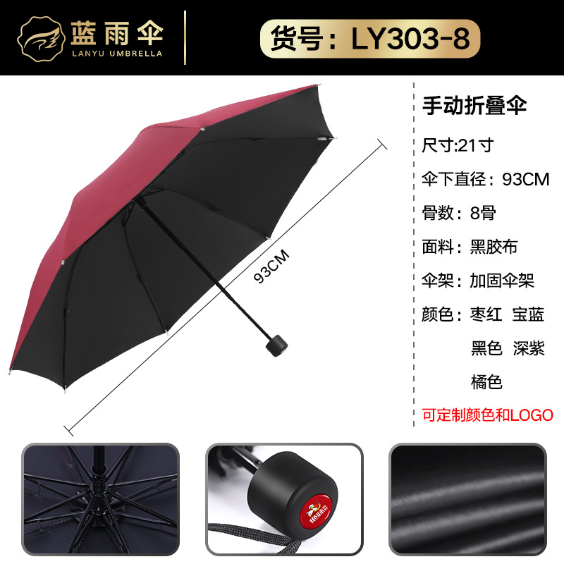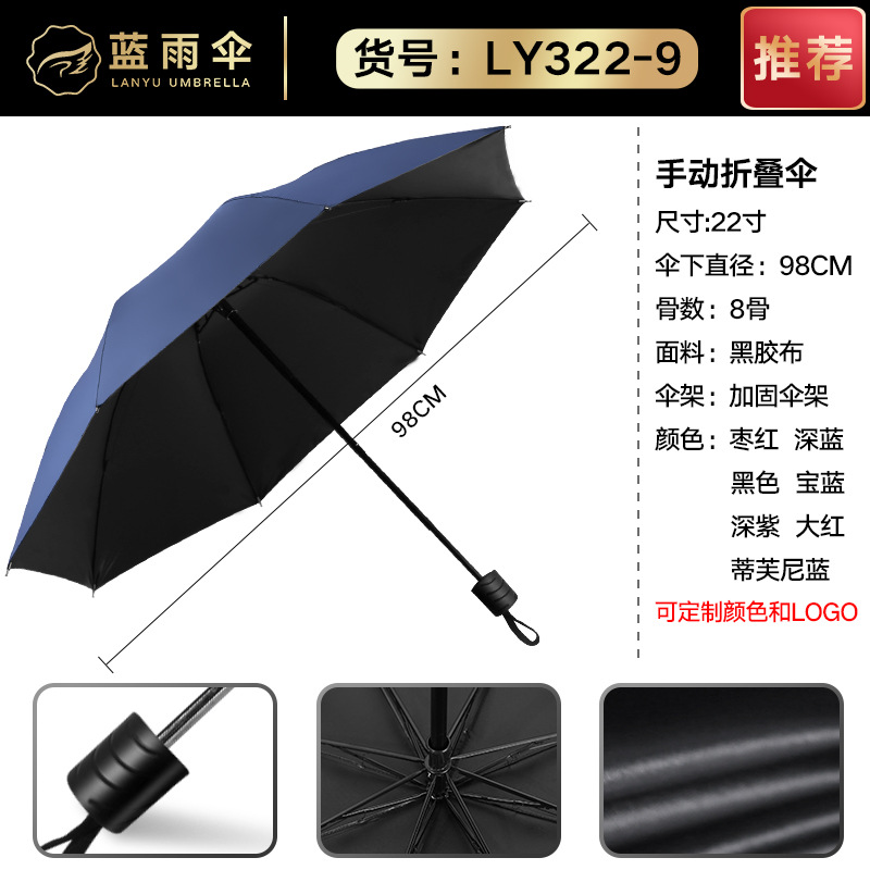 • 접는 우산: 8 뼈 검정 고무 강화 두꺼운 접는 우산