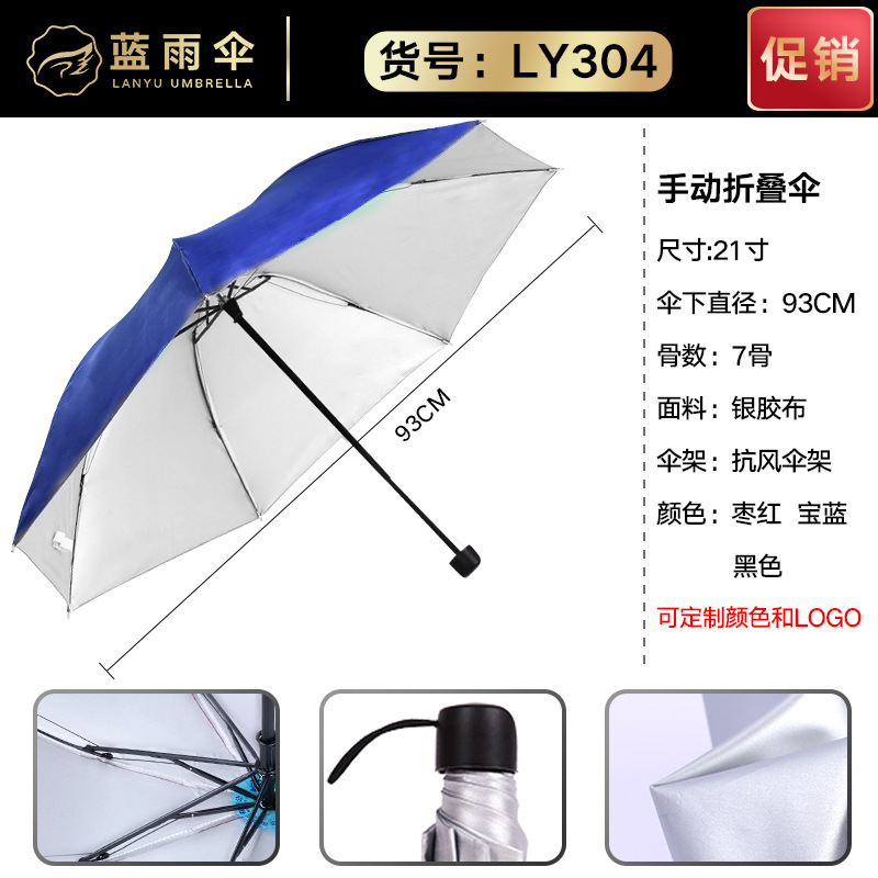 • 접는 우산: 7 뼈 실버 접착제 손 접는 우산
