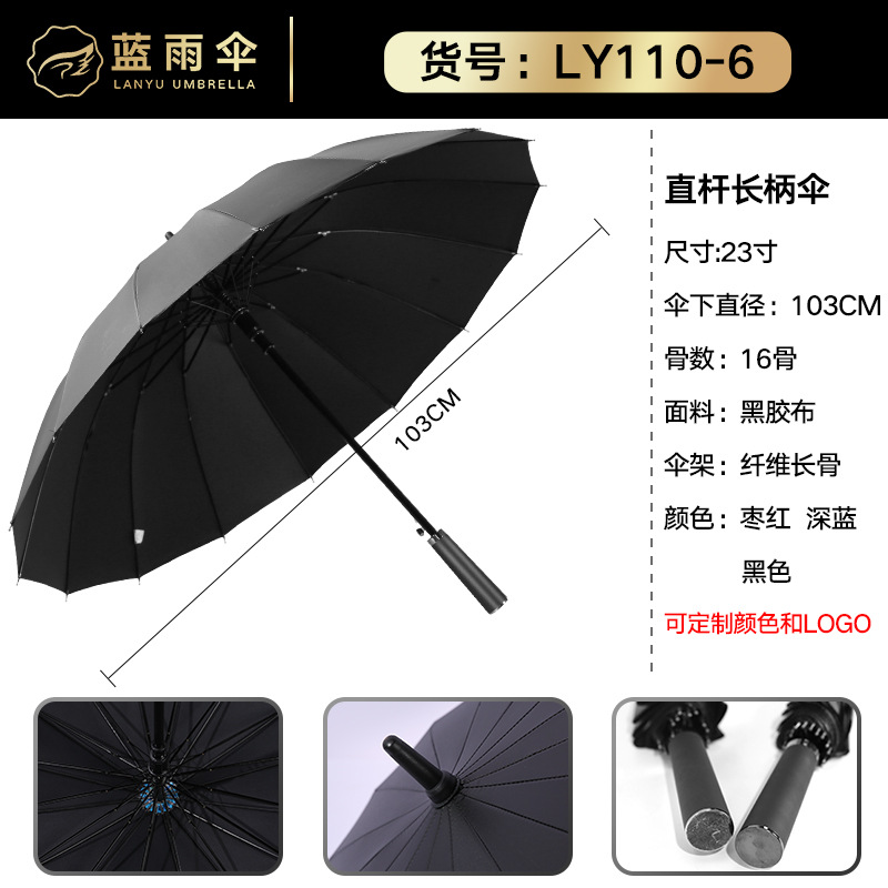 • 스트레이트 막대 우산: 16 뼈 검은 접착제 암호화 긴 우산