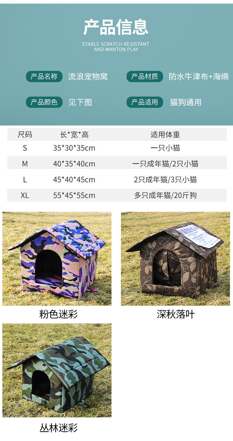 야외 방황 애완 동물 둥지 방수 방한 애완 동물 텐트 고양이 둥지 여름 개 둥지 옥스포드 천 애완 동물 침대 이동식 및 빨