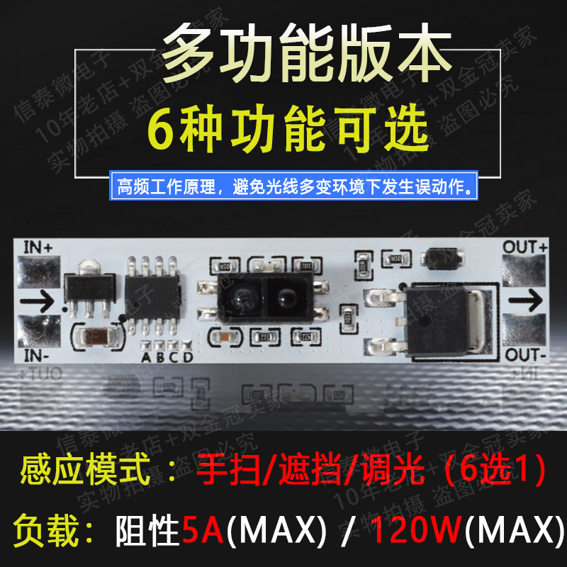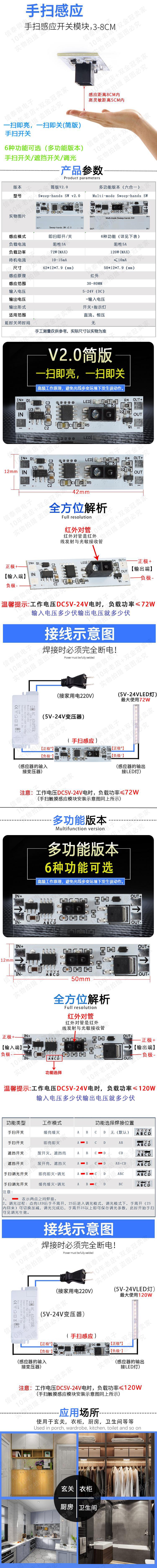 5V-12V-24V 72W 내부 캐비닛 옷장 신발 캐비닛 LED 조명에 적합한 핸드 스윕 휴대용 센서 스위치 모듈