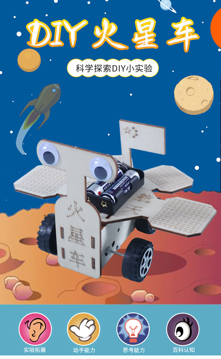 Zhu Rong 화성 탐사 차량 로봇 줄기 과학 작은 실험 세트 우주 모형 수제 재료 장난감