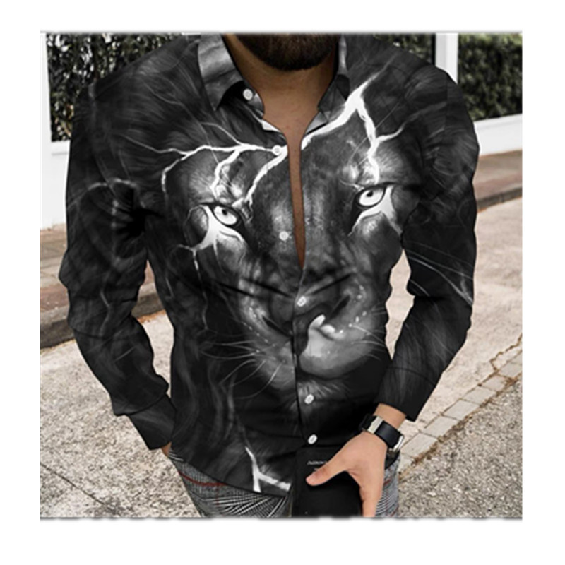 2022 유럽과 미국 남성 셔츠 가을 긴 소매 옷깃 셔츠 3d 인쇄 캐주얼 셔츠 남자의 느슨한 남성 셔츠