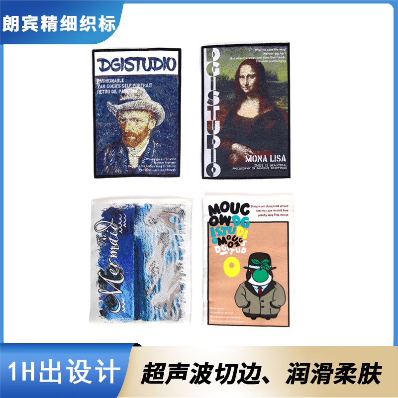 고급 초미세 피규어 레트로 유화 스타일 고밀도 초음파 천 스티커 직조 라벨 자수 스티커 직조 마크 패치 스티커