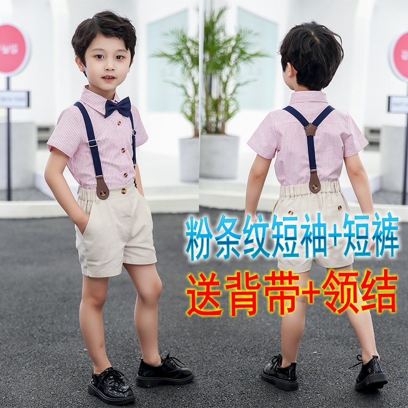소년 세트 여름 새로운 잘 생긴 반팔 셔츠 멜빵 바지 투피스 유치원 졸업 원피스 성능 원피스스토어 가기