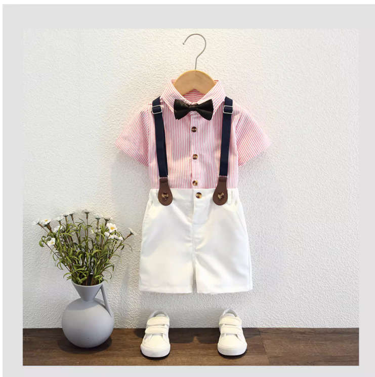 소년 세트 여름 새로운 잘 생긴 반팔 셔츠 멜빵 바지 투피스 유치원 졸업 원피스 성능 원피스