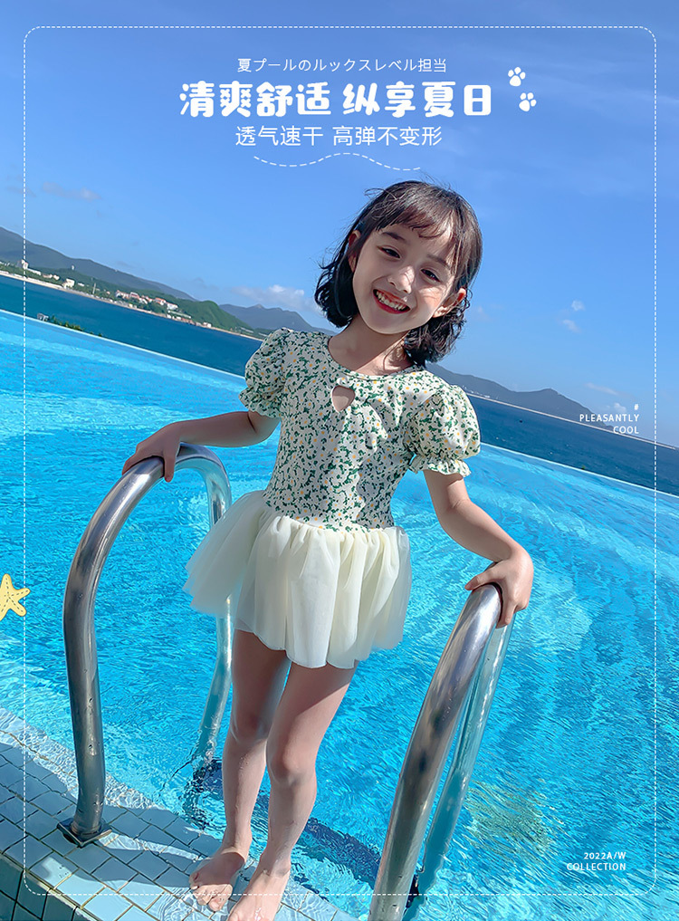 어린이 수영복 여성 공주 스커트 반팔 자외선 차단제 세트 아기 소녀 귀여운 베일 스커트 수영복 한국 스타일스토어 가기
