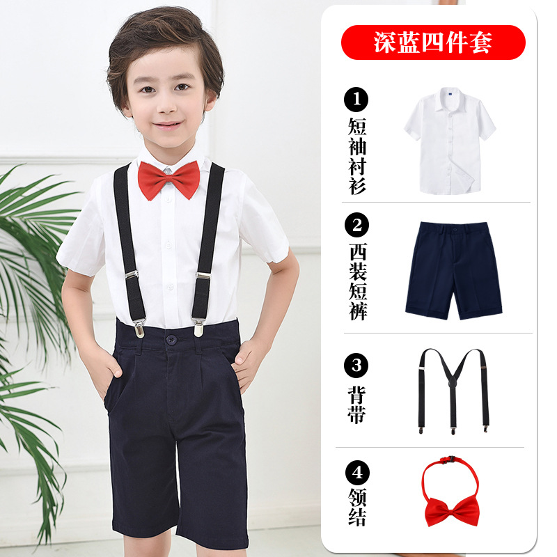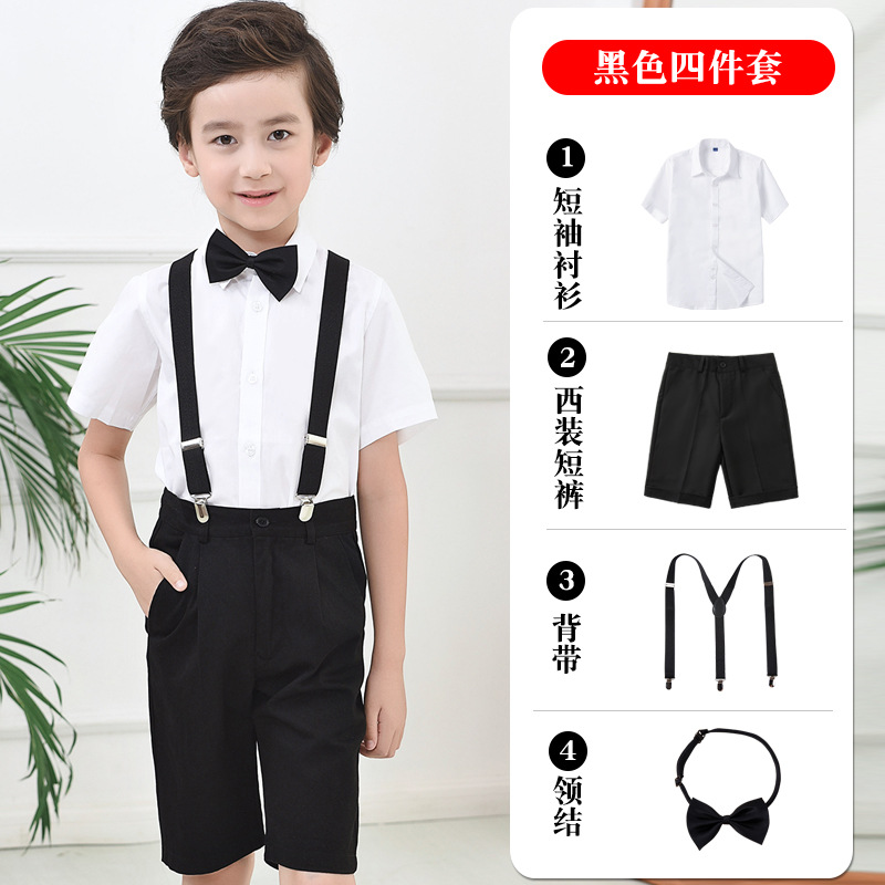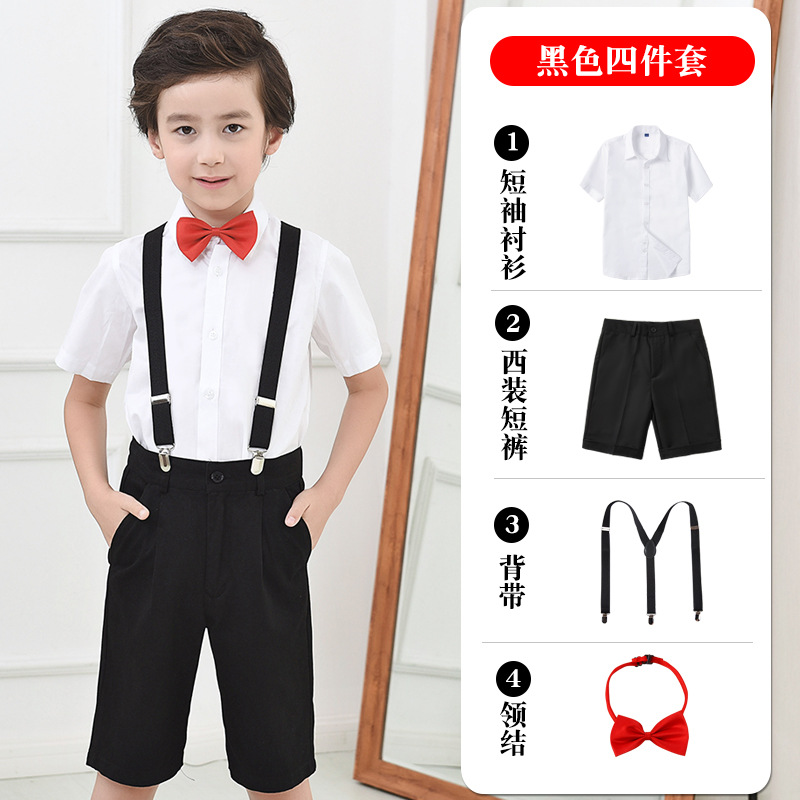 어린이 원피스 소년의 여름 반팔 흰색 셔츠 검은 바지 세트 꽃 소년의 학생 공연 원피스 피아노 연주 원피스스토어 가기