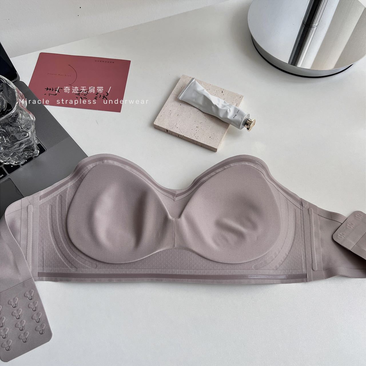 기적의 끈이 없는 속옷 여성용 젤리 소프트 지원 작은 가슴 푸시 업 미끄럼 방지 원피스 한 단어 아름다운 뒷베이스 튜브 탑스토어 가기