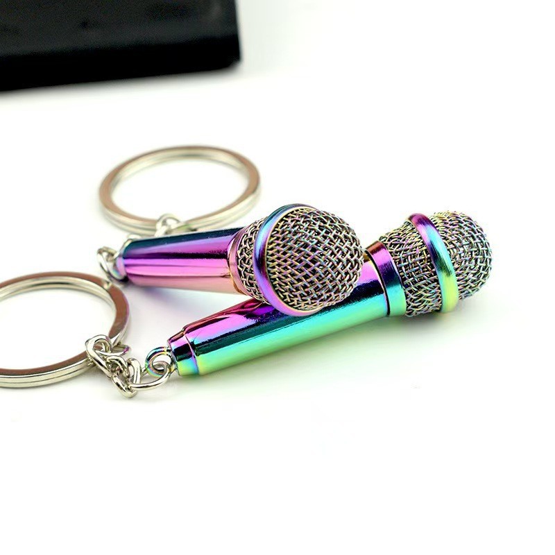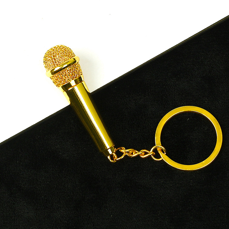 크로스 보더 KTV 바 소형 선물 레터링 자동차 열쇠 고리 펜던트 시뮬레이션 메탈 마이크 키 체인스토어 가기