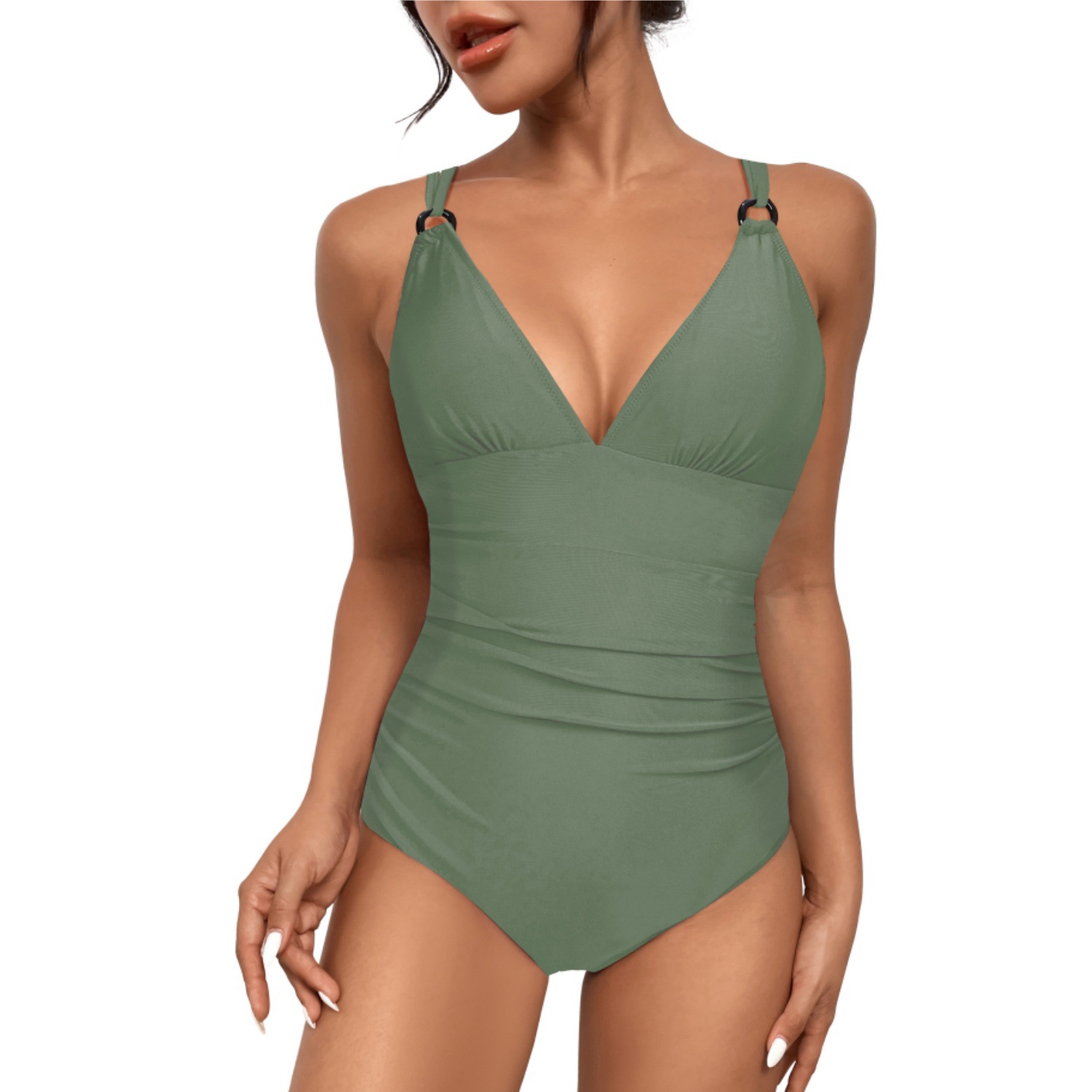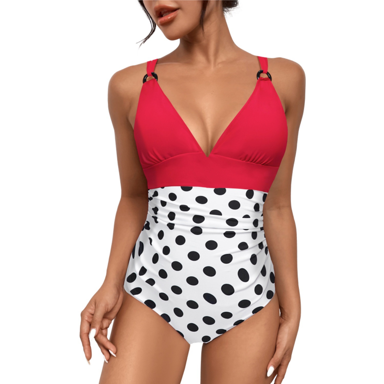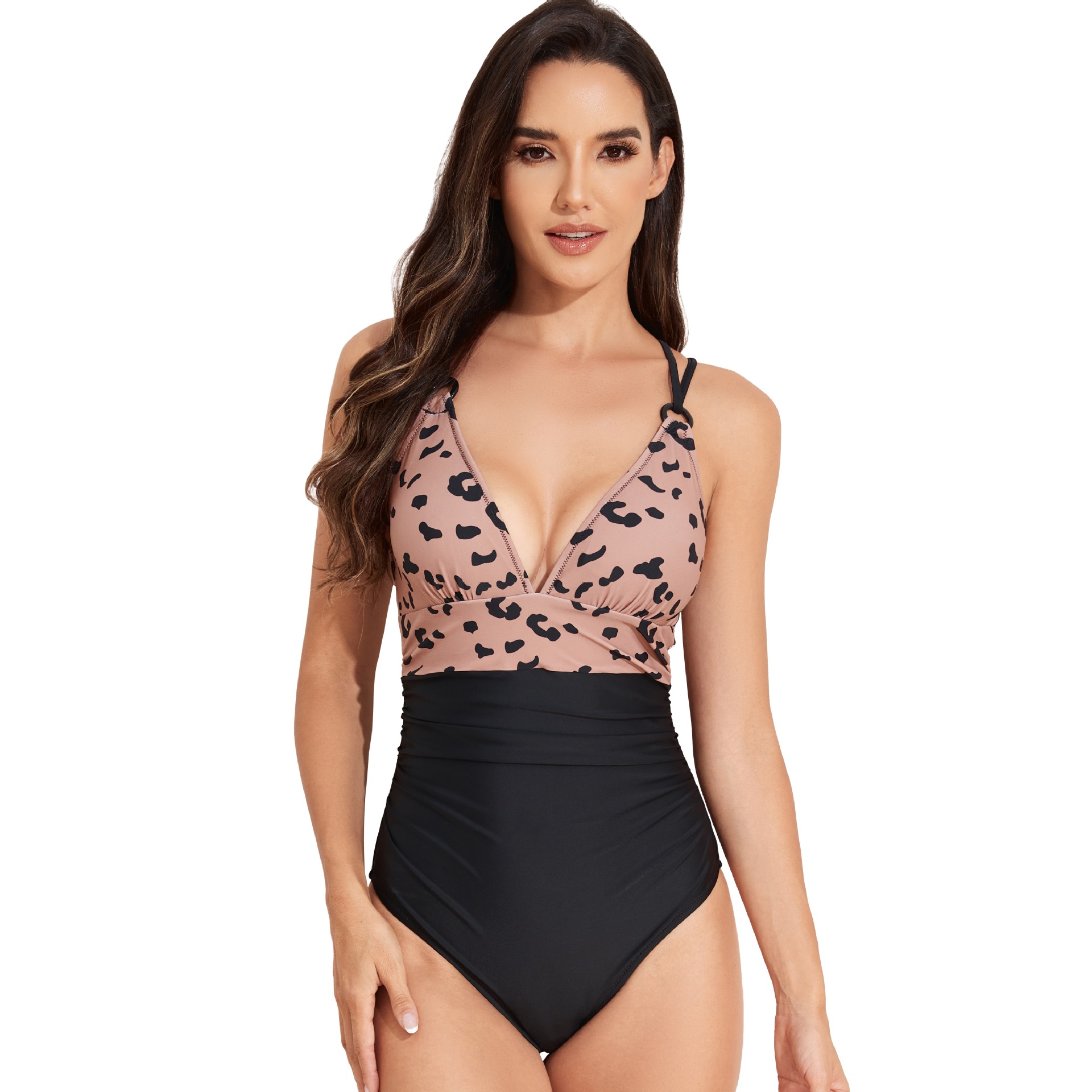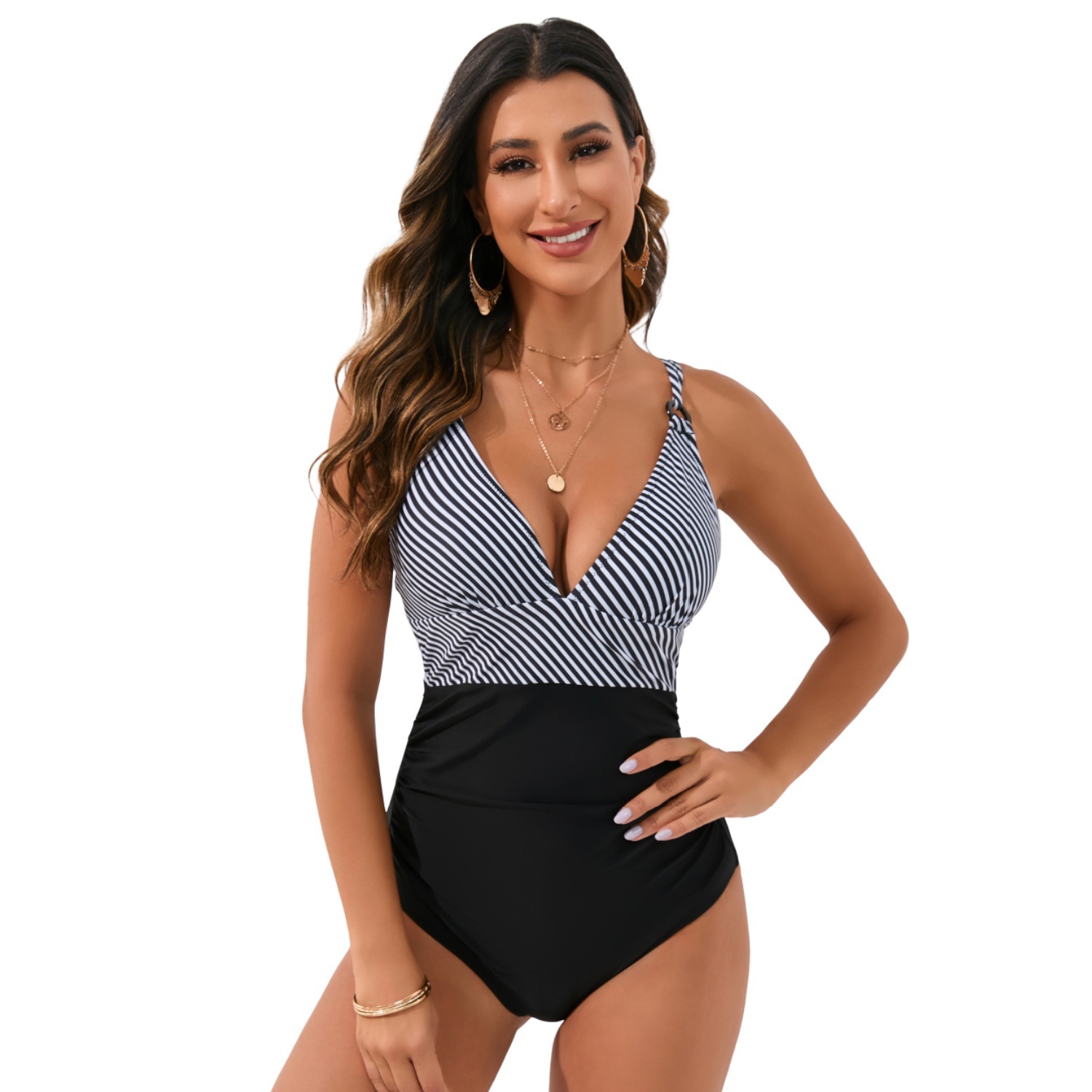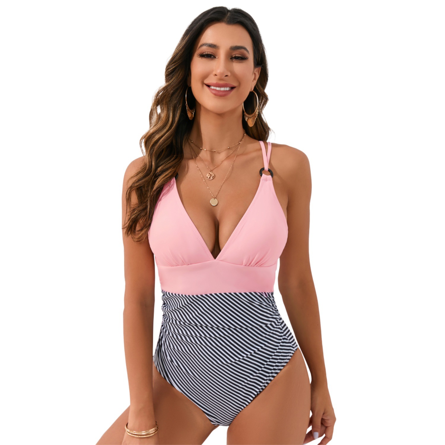 2024 수영복 여성 섹시 컬러 매칭 유럽과 미국 수영복 고삐 원피스 수영복 딥 V 스트라이프 수영복 도매