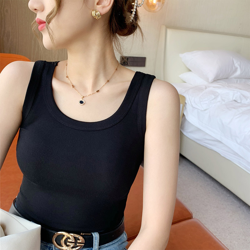 여성 조끼는 여름 와이드 숄더 올 매치베이스 민소매 탑 니트 스레드 탄성 편안한 작은 슬링을 통해 찢어 수 없습니다