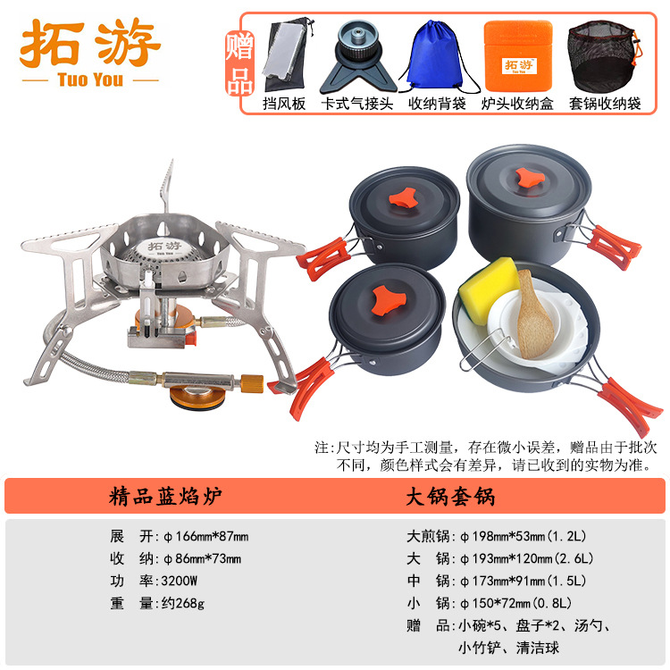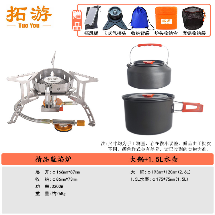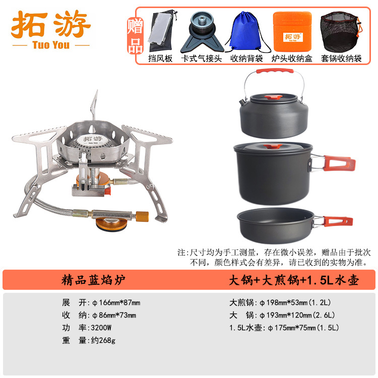 • 블루 플레임 스토브 + 큰 냄비 + 큰 프라이팬 + 1.5L 주전자