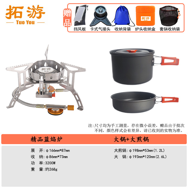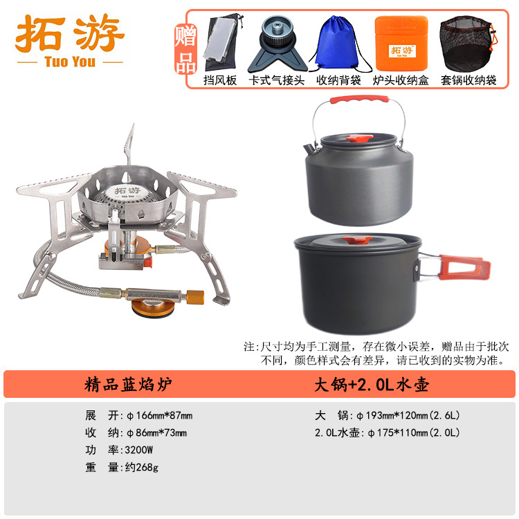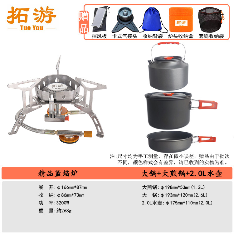 • 블루 플레임 스토브 + 큰 냄비 + 큰 프라이팬 + 2.0L 주전자