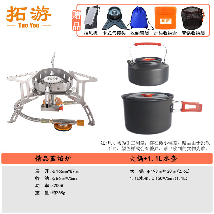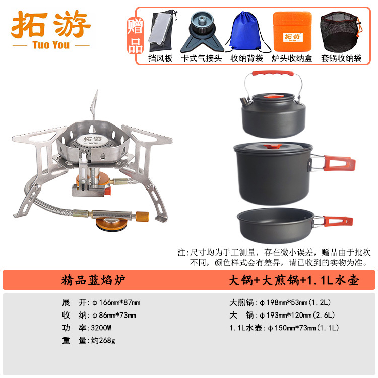• 블루 플레임 스토브 + 큰 냄비 + 큰 프라이팬 + 1.1L 주전자