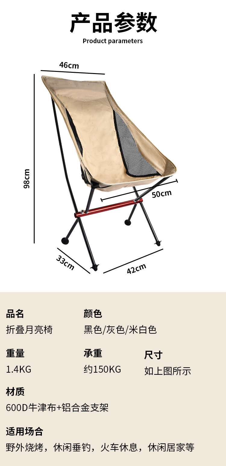 야외 달 의자, 휴대용 초경량 알루미늄 합금 접이식 의자, 캠핑 해변 바베큐, 자율 주행 레저 낚시 의자
