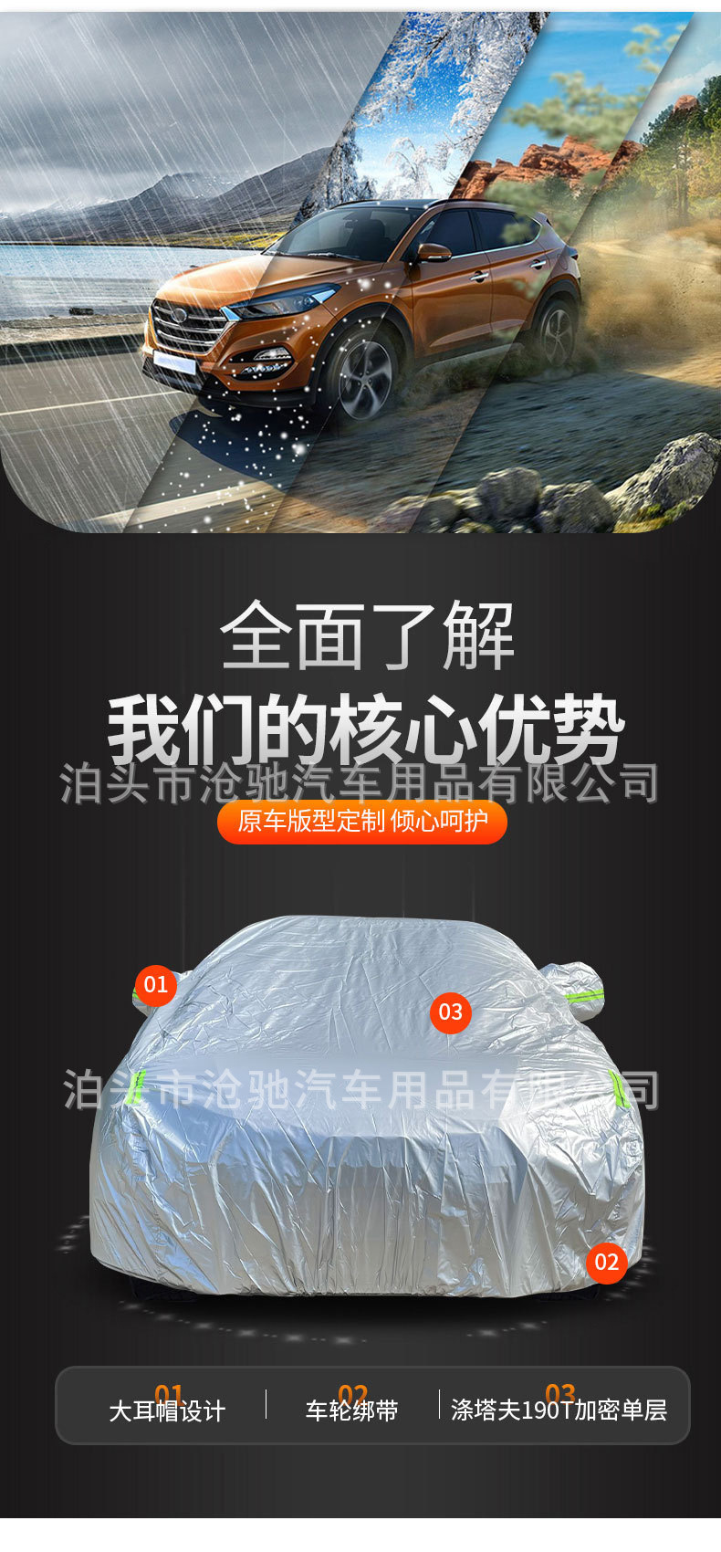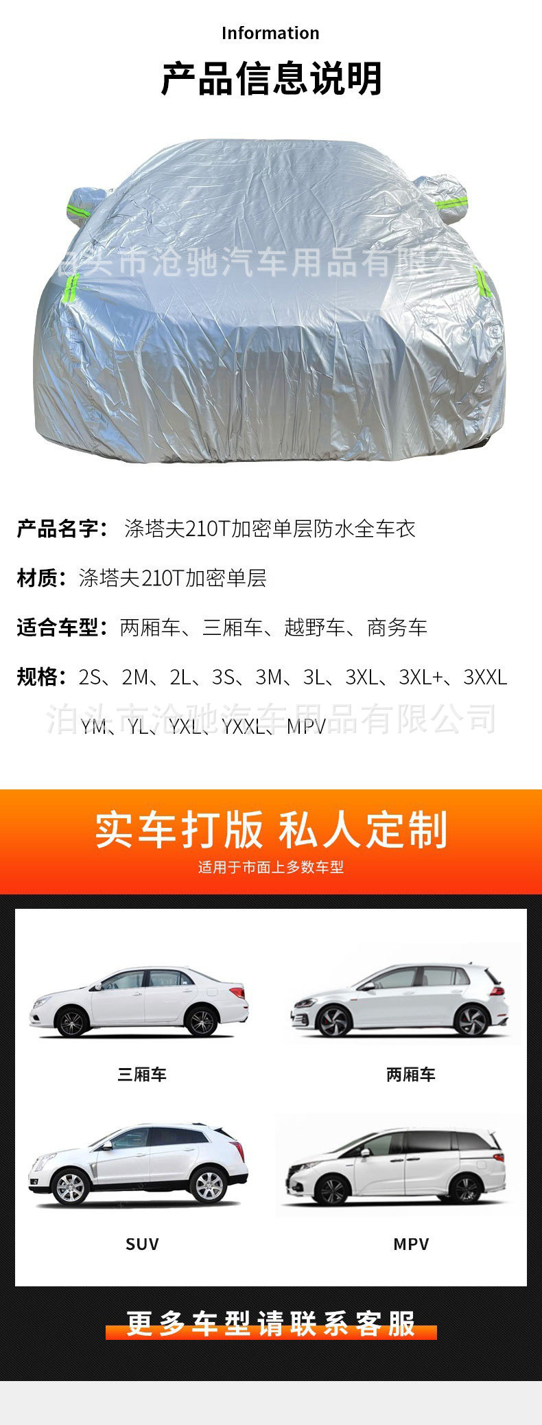 폴리에스터 태피터 210T 암호화 단층 전체 자동차 커버, 기성품 자동차 커버, 범용 자외선 차단, 방진, 방풍 및 동결 방지 자동차 커버