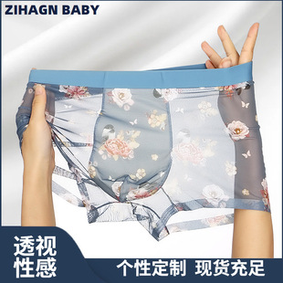 아이스 실크 남성 속옷 메쉬 무봉제 사각팬티 남성 통기성 섹시 속건 남성 반바지 사각형 아이스감 쿠포네이트