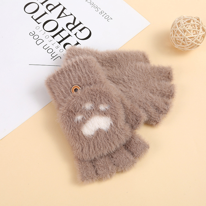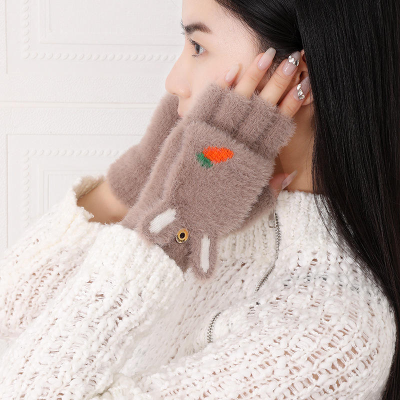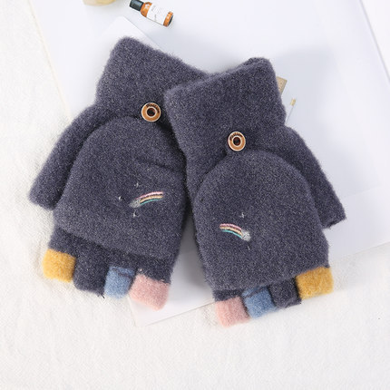 2024 새로운 학생 손가락 누출 따뜻한 귀여운 자수 무지개 겨울 반 손가락 장갑 니트 기모 플립 커버 장갑