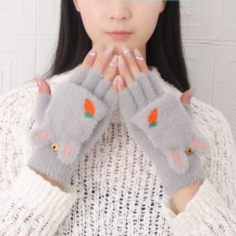 2024 새로운 학생 손가락 누출 따뜻한 귀여운 자수 무지개 겨울 반 손가락 장갑 니트 기모 플립 커버 장갑스토어 가기