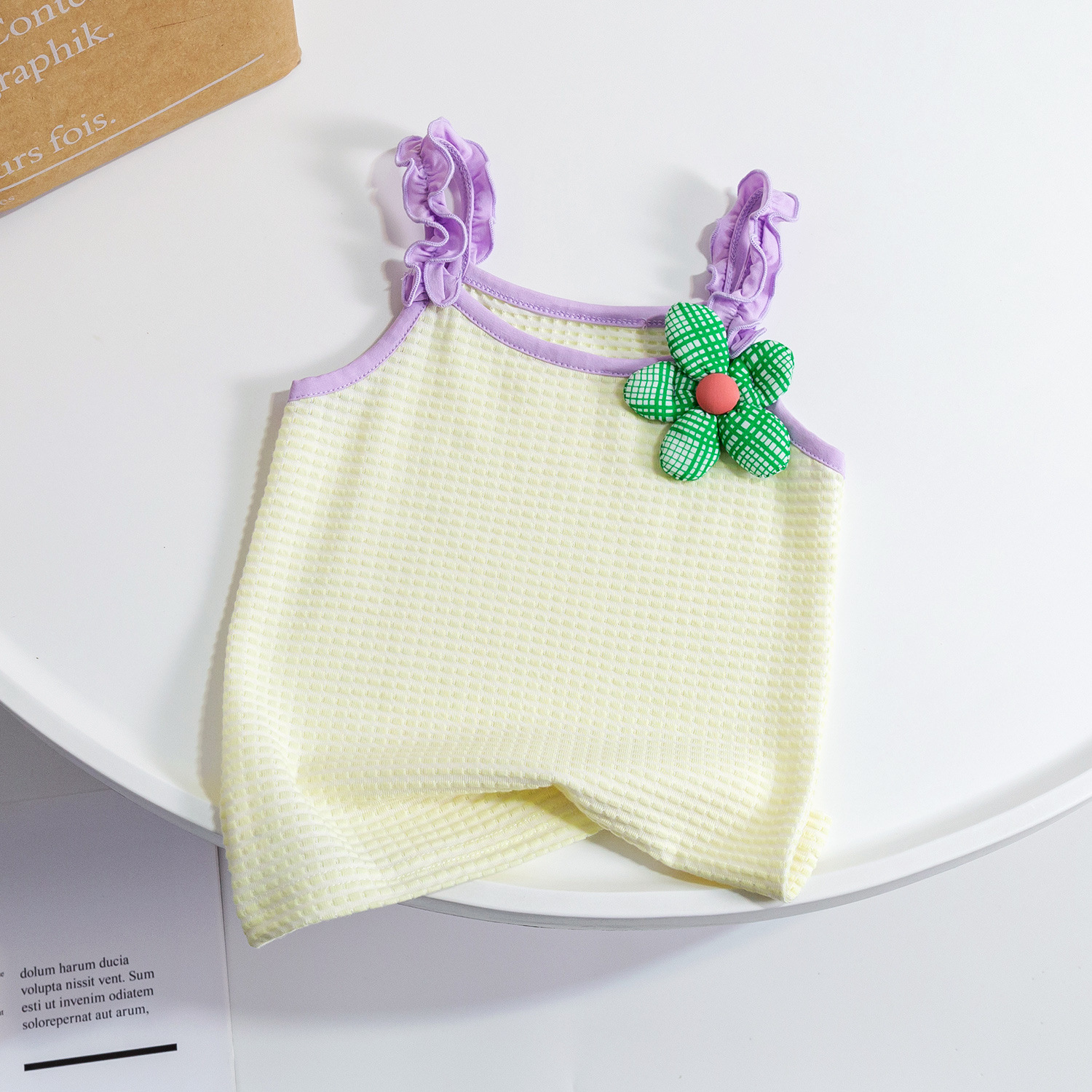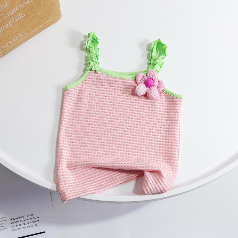 소녀의 여름 서양식 꽃 조끼 작은 소녀의 작은 캐미솔 아기의 편안한 귀여운 민소매 스트라이프 탑