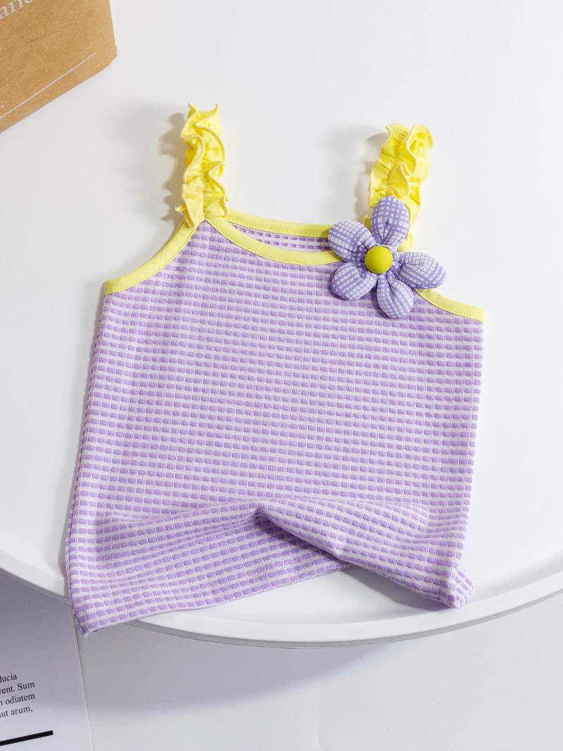 소녀의 여름 서양식 꽃 조끼 작은 소녀의 작은 캐미솔 아기의 편안한 귀여운 민소매 스트라이프 탑스토어 가기