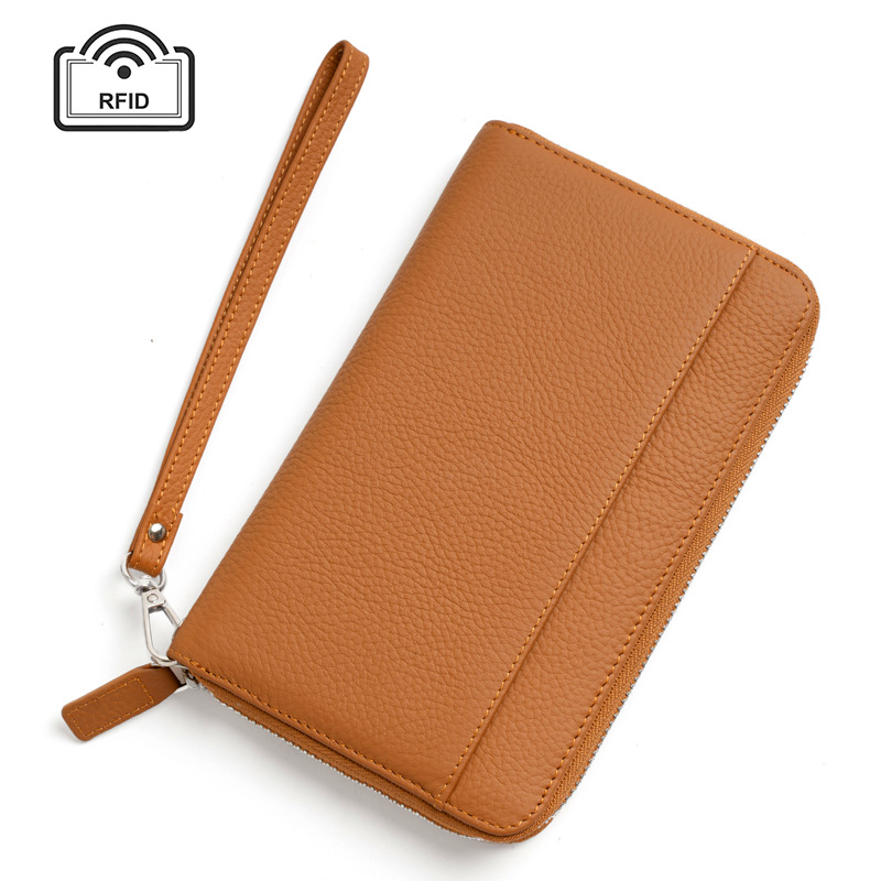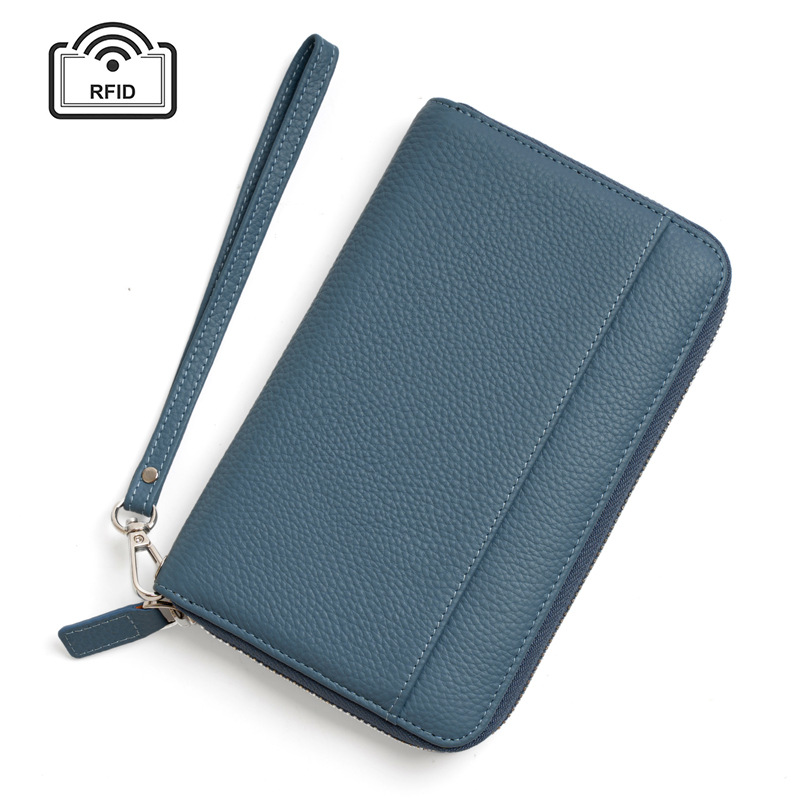 新款钱包长款女 护照包大容量卡位存折包拉链通帳本钱夹rfid