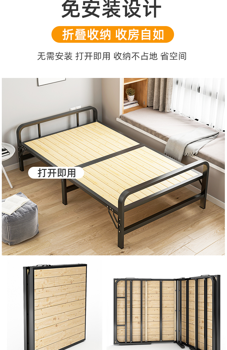 접이식 침대 싱글 더블 1.2m 안락 의자 사무실 점심 시간 홈 싱글 침대 작은 침대 간단한 대나무 침대 단단한 나무 침대스토어 가기