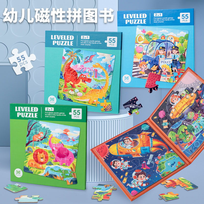 북 클립형 대조각 직소 퍼즐 조기 교육 계발 동물 자동차 인지 장난감 아기 공룡 동물 학습 테마 배치스토어 가기