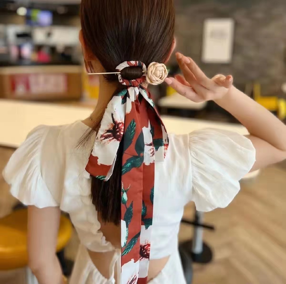 • 화이트 실크 스카프 머리핀