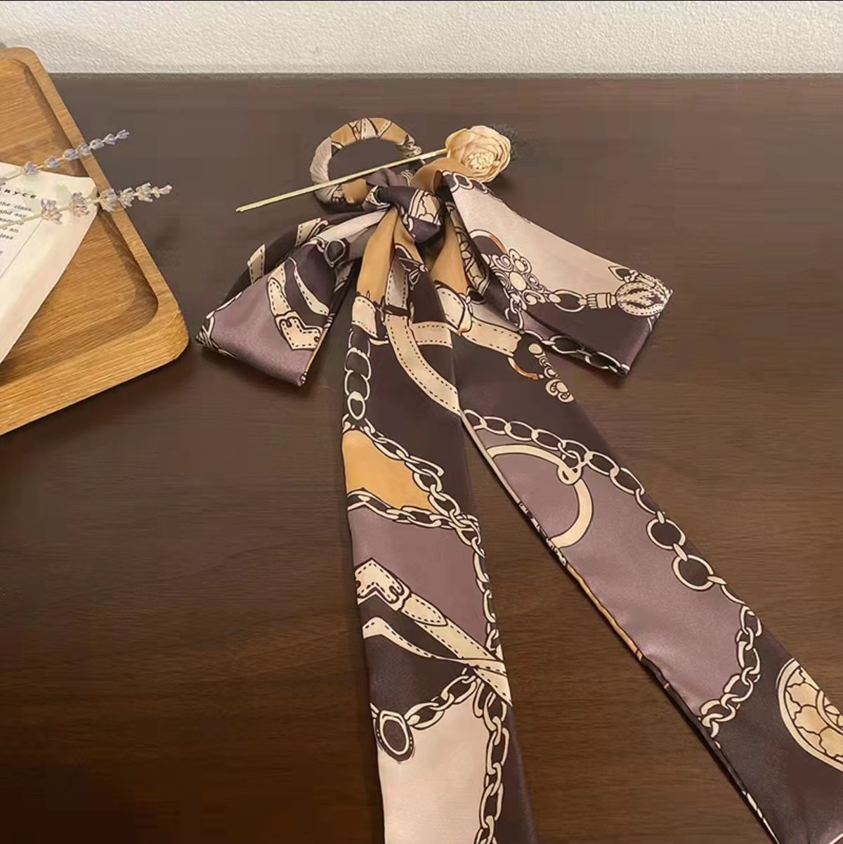 • 다크 브라운 체인 스카프 머리핀