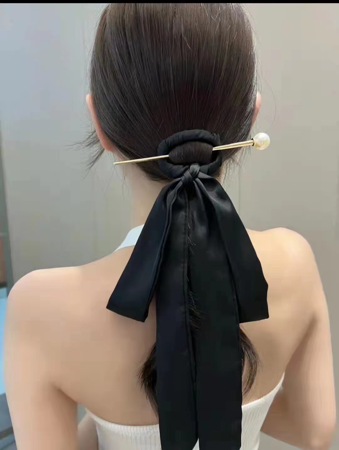 천 자 헤어 머리핀 리본 머리띠 프레스 백 간단한 골동품 스타일 여성용 활 Hanfu 머리 장식 디스크 헤어 액세서리 현대 머리핀스토어 가기