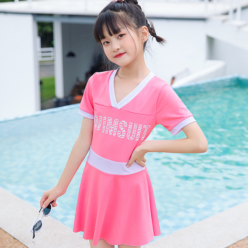 2024 새로운 여자 수영복 한 조각 중대형 어린이 수영복 14.00 kg-40.00 kg 복서 소녀 스파 수영복