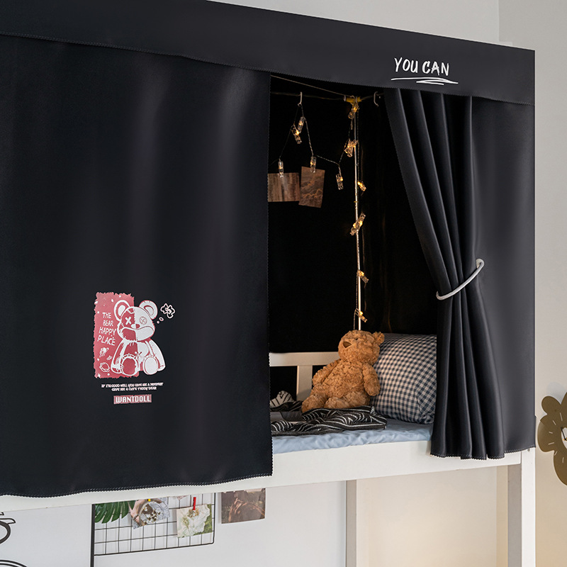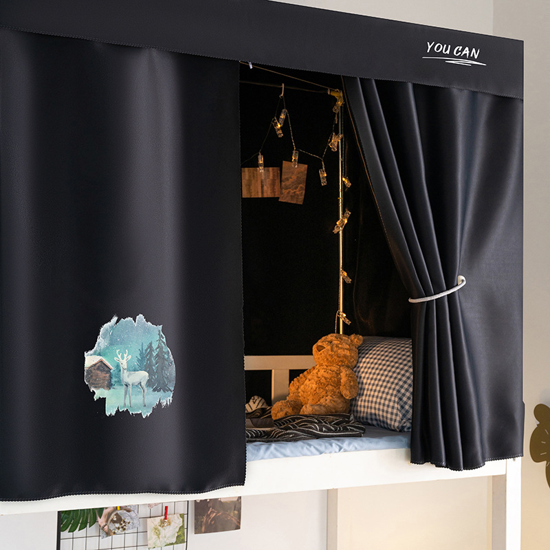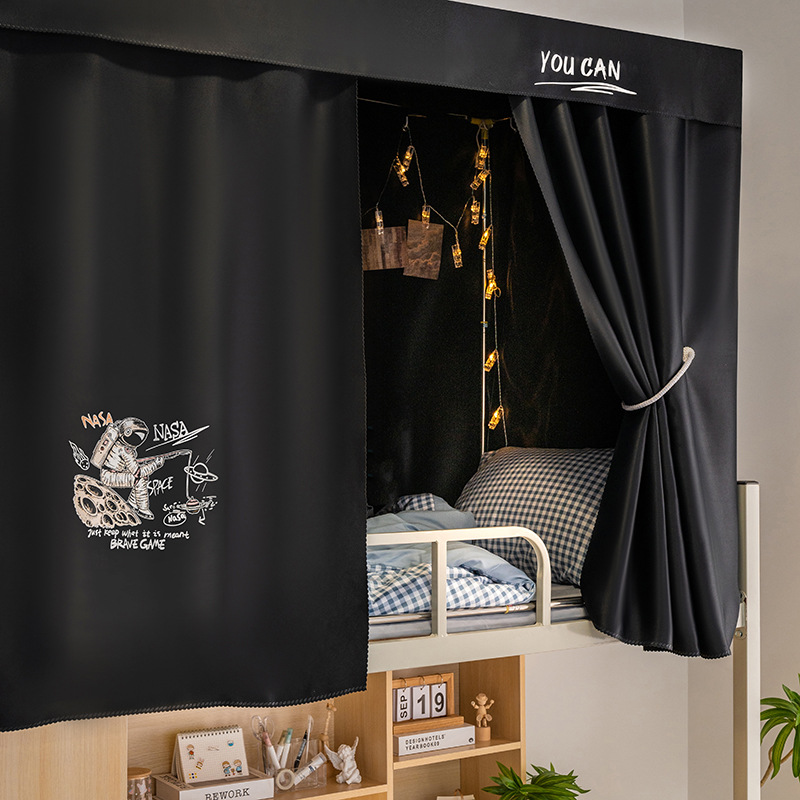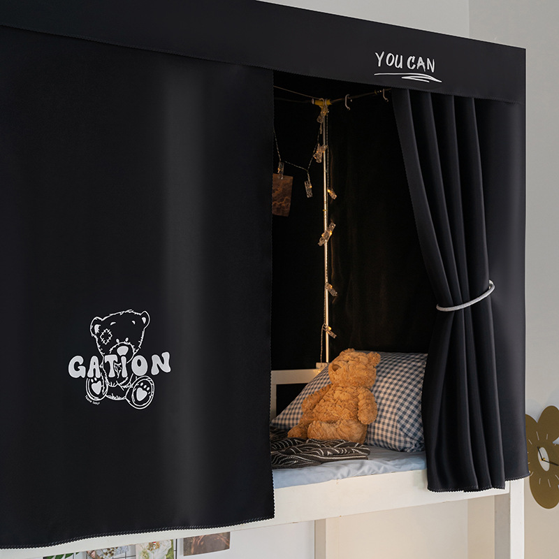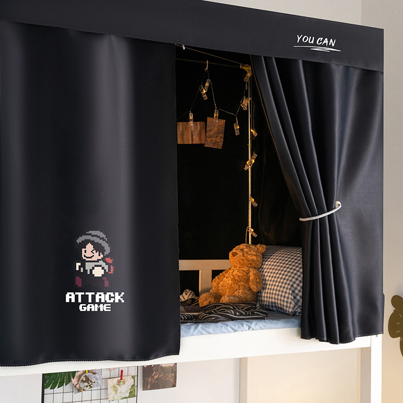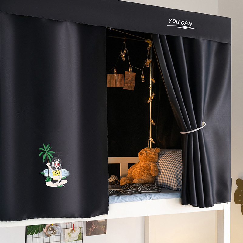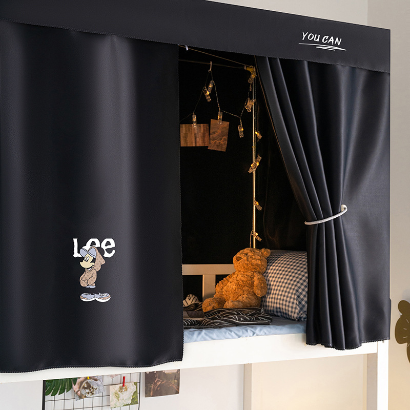 학생 기숙사 슈퍼 차양 침대 커튼 퓨어 블랙 심플 커튼 상부 침대 남자 기숙사 하부 침대 여성용 두꺼운 통기성 침대 커튼스토어 가기